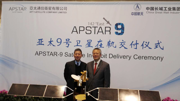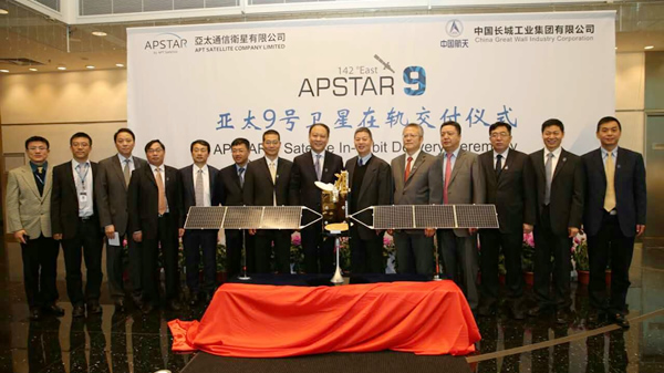 2016年1月20日,中国航天科技集团所属中国长城工业集团有限公司(以下简称"长城公司")和香港亚太通信卫星有限公司(以下简称"亚太公司")在香港大埔卫星地面站举行亚太九号卫星在轨交付仪式,亚太九号卫星正式完成向客户的在轨交付。