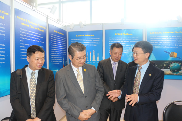 公司展出的航天高科技成果引来各界人士驻足参观,影响热烈。泰国科技部副常务秘书宋猜和中国驻泰国使馆曹周华参赞等莅临公司展台,详细聆听介绍。