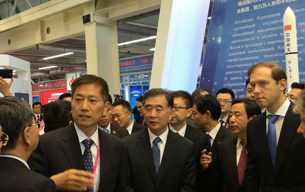 此次国际创新工业展充分展示了中国航天实力并取得重要成效。开幕式结束后,中央政治局委员、国务院副总理汪洋、俄罗斯联邦政府梅德韦杰夫总理、俄罗斯联邦政府罗戈金副总理等莅临公司展台并详细观看了公司展品。张新强副总裁分别向梅德韦杰夫总理和汪洋副总理介绍了中国卫星、火箭、高分工程、载人航天、北斗导航和卫星应用发展情况,中俄航天合作项目情况和长城公司业务情况,希望总理大力支持中俄航天合作。梅德韦杰夫总理询问了长征五号发动机等情况,表示继续加强和支持中俄两国航天合作。