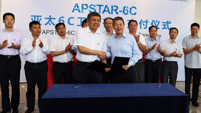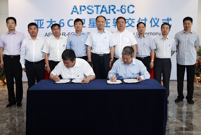 2018年8月7日,中国航天科技集团所属中国长城工业集团有限公司(以下简称"长城公司")和香港亚太通信卫星有限公司(以下简称"亚太公司")在香港大埔卫星地面站举行亚太6C卫星在轨交付仪式,亚太6C卫星完成向客户的在轨交付。中国航天科技集团有限公司副总经理杨保华率团出席仪式,长城公司董事长刘强和亚太公司总裁程广仁签署了交付文件。