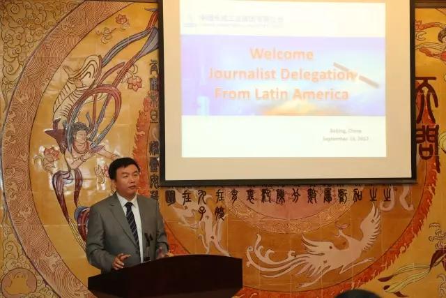 长城公司美洲部副总经理陈凯向记者团介绍了中国航天的历史,并从长城公司可提供的服务、中拉航天合作成果和未来发展等方面向记者们进行了详细讲解。