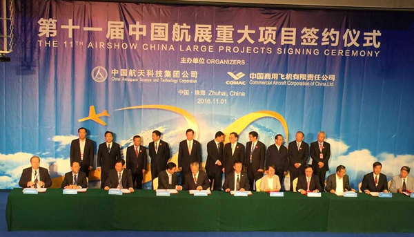 中国长城工业集团有限公司(长城公司)与香港亚太通信卫星有限公司(亚太公司)、亚太卫星宽带通信(深圳)有限公司(亚太星通)、卢森堡空天通信公司以及中国运载火箭技术研究院、中国空间技术研究院、上海航天技术研究院等单位在第十一届珠海航展上签署了亚太全球高通量宽带卫星系统采购意向书和亚太6D宽带卫星在轨交付合同、LSTSAT-1通信卫星在轨交付框架协议、长征火箭和遥感卫星地面接收处理系统的批量采购框架协议和鸿雁卫星星座通信系统合作开发框架协议,签约金额突破200亿元。