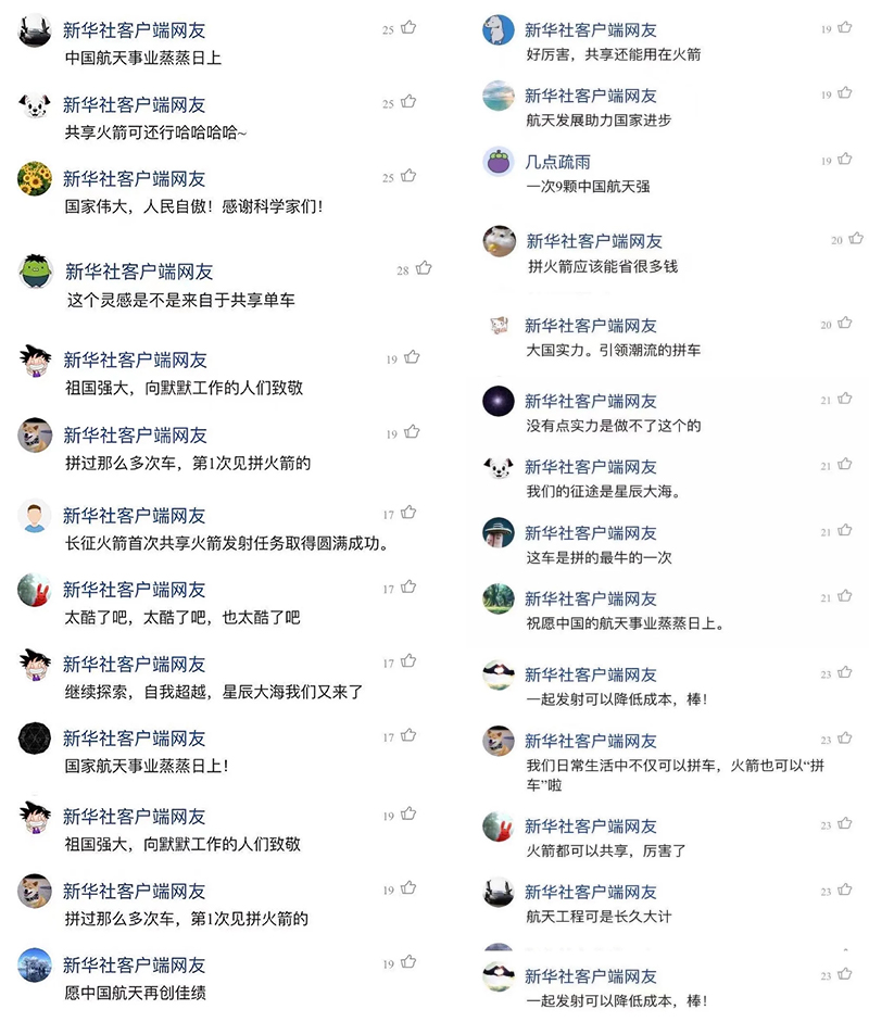 新华社、中国科技网、新京报等主流媒体对发射进行的视频、图文报道,引发网友热议点赞
