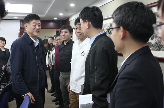 会后,李洪与航天新商务公司参会员工亲切交流。