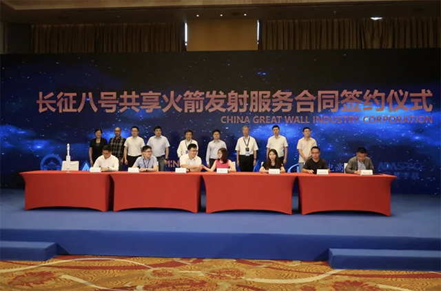 2022 年 2 月 27 日 11 时 06 分,中国长城工业集团有限公司(长城公司)使用长征八号运载火箭以“共享发射”模式在文昌航天发射场将泰景三号01卫星、泰景四号 01卫星、海南一号01/02星、文昌一号01/02星、吉林一号高分03D10-18星(9颗)、吉林一号MF02A01星、巢湖一号卫星、创星雷神号卫星、天启星座19星、星时代-17 卫星、启明星一号卫星、西电一号卫星共 22 颗卫星成功送入预定轨道。