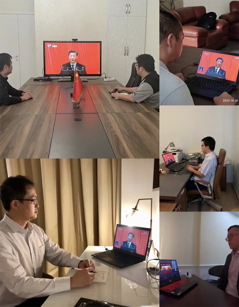 公司所属各单位基层党组织广大党员干部职工通过电视、网络、广播、报纸等渠道及时收听收看相关报道,关注了解大会消息,认真学习领会党的二十大报告精神。公司在国外执行任务的团队、各驻外代表也克服时差,通过网络等收看收听二十大开幕盛况,做到同步学习、同频宣贯。