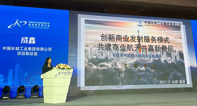 本届研讨会以“铸链·共赢 构建商业航天新格局”为主题,旨在研讨当前商业航天在商业运载、商业卫星、卫星应用、航天测控、投融资等领域发展的新动向、新热点和新需求,交流分享商业航天发展的新思路和成功经验。长城公司在会上作了题为《创新商业发射服务模式,共建商业航天共赢发展新格局》的专题报告,简述了国际商业航天发射服务市场新进展,介绍了长城公司在2022年商业航天市场的实践经验和体会,重点推介了长城公司更成熟的“共享火箭”服务模式、“长征快车”发射服务品牌以及完善的系统集成服务能力,借此表达了长城公司助力共建商业航天共赢发展新格局的意愿。
