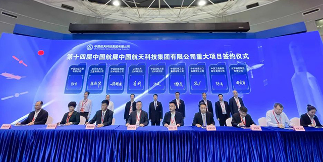2022年11月8日,第十四届中国国际航空航天博览会在广东省珠海市正式开幕。作为展示当今国际航空航天科技发展水平的盛会,本届航展国际化、专业化、市场化水平高,众多国之重器“精彩亮相”,大批先进装备“首发首秀”,多场会议论坛“闪亮登场”,各方借助航展平台,充分展示创新成果,务实开展交流合作,共同创造美好未来。中国航天科技集团有限公司在航展重大项目签约仪式上,与国家相关部门、地方政府、企业集团等签署合作协议及合作意向,累计签约金额超500亿人民币。