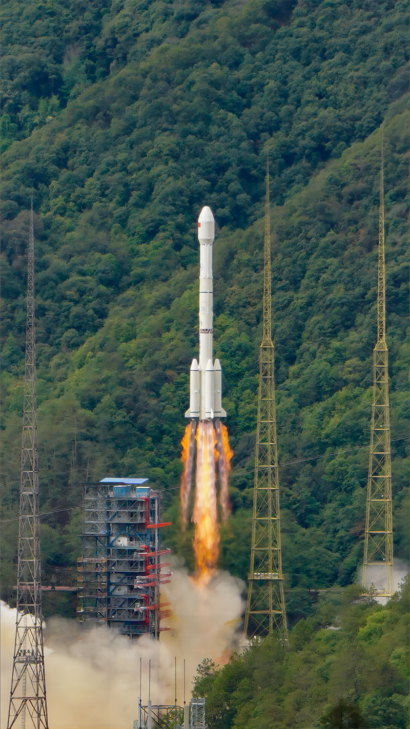 ▲ 长征三号乙运载火箭点火升空(杨成 摄)