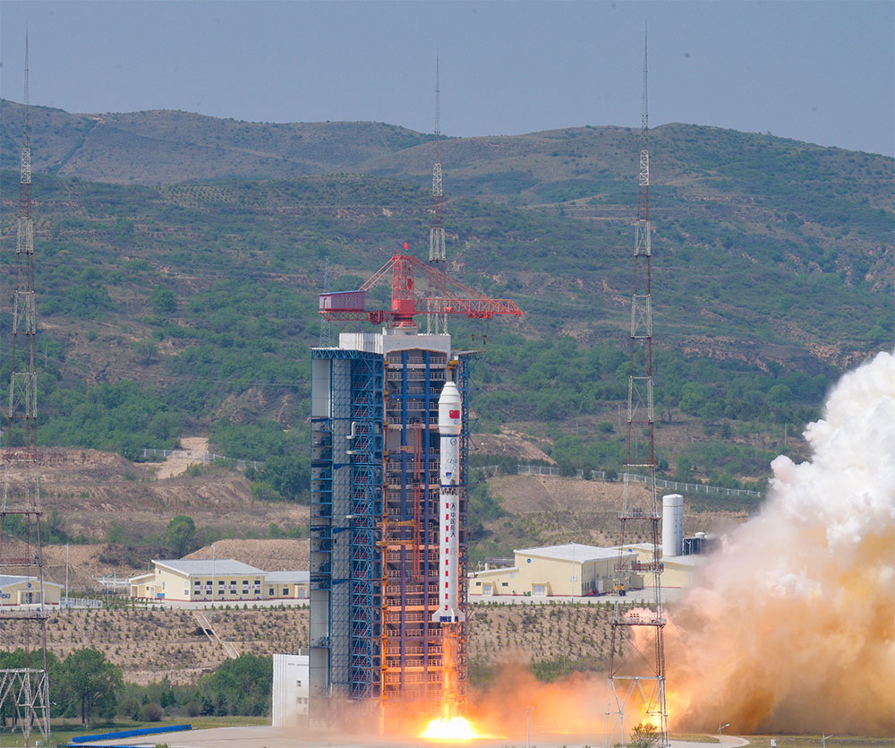 ▲ 长征二号丁运载火箭点火升空(朱彦杰 摄)