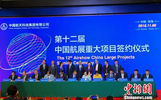 中新网珠海11月6日电 (记者 孙自法)中国航天科技集团有限公司6日发布消息说,在当天开幕的第12届中国国际航空航天博览会(即珠海航展)举行的项目签约仪式上,该集团共签署各类合作协议32项,签约金额达到452.71亿元,签约项目涉及宇航、防务、航天技术应用产业等众多领域。
